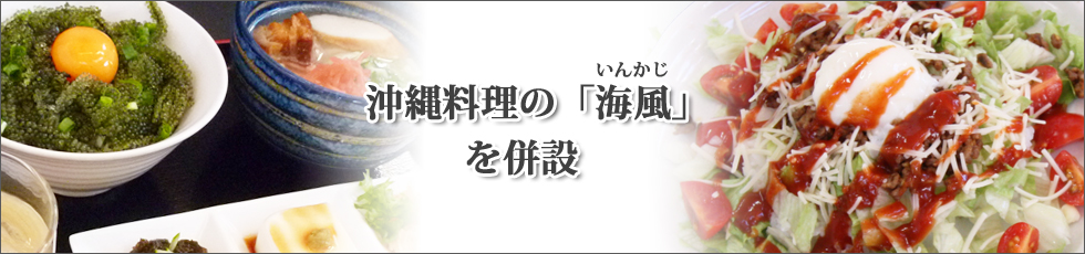 ナナコショップに併設の「海風(いんかじ)」では、沖縄料理をお楽しみいただけます。沖縄からアーティストを招いての「島唄ライブ」、また沖縄在住の先生による「三線教室」も開催しています。