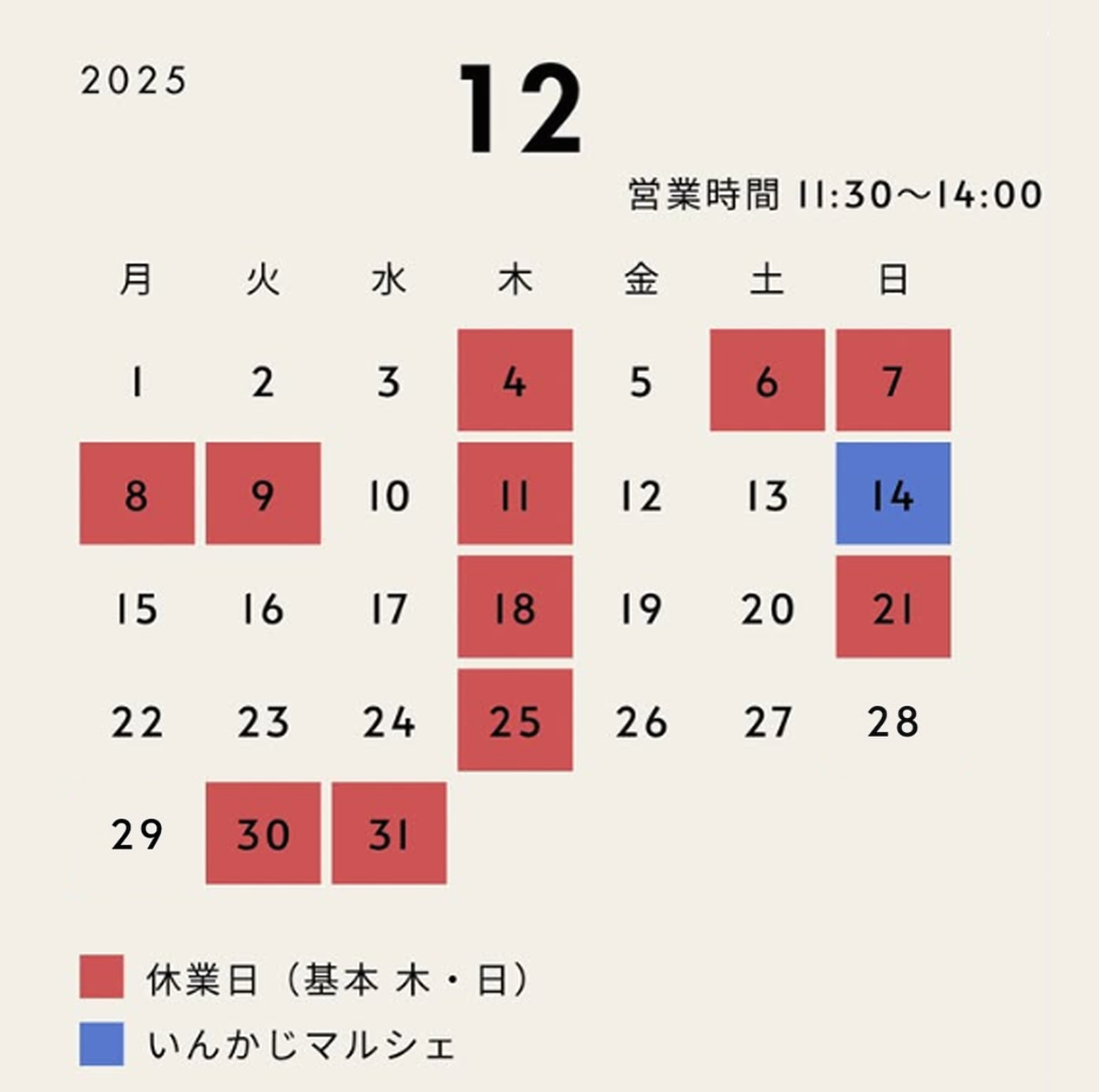 2025年の営業は、12月29日(月)までです。