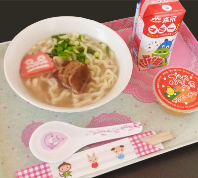 キッズそば(ジュース付) 650円(税込) シーサーかまぼこが入っているよ! |