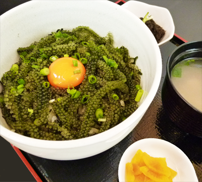 海ぶどう丼セット 1,250円(税込) 宮古島高野漁港直送の海ぶどうを使用。 |