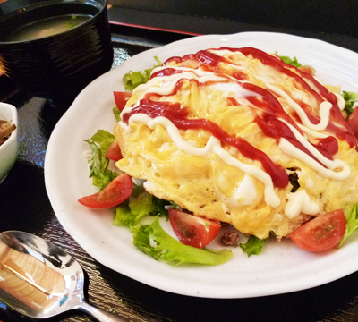 オムタコライスセット 1,300円(税込) タコライスにとろふわ卵をのせて、まろやかにマヨネーズとホットソースをかけました。 |