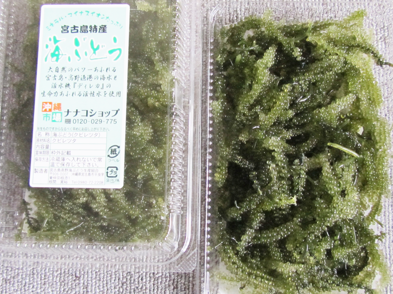 なので、当店で扱っている宮古島の海ぶどうは沖縄本島産の物に比べ塩味が若干少なく、柔らかな味わいなっています。
